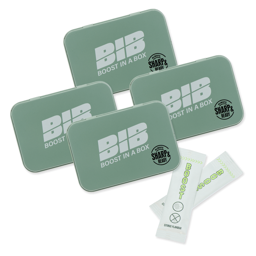 Den koncentrerade pulverformen gör att ingredienserna snabbt tas upp av kroppen. Pulverformen gör också att BIB tar liten plats och enkelt kan hänga med när som helst och var som helt. Den är packad i små fickvänliga boxar med praktiska boostpåsar – 1 boost/påse. Din box kan du ta med överallt – även genom säkerhetskontrollen på flygplatsen. Du behöver inte kyla BIB för att den ska smaka gott, och den fryser inte vid minusgrader. Koffeinet i BIB har heller inte någon besk bismak, utan en fräsch smak av citrus. Dessutom ger de lätta små boxarna ett lägre miljöavtryck vid transporter än tunga flaskor och burkar. Och slutligen - BIB är givetvis sockerfritt!